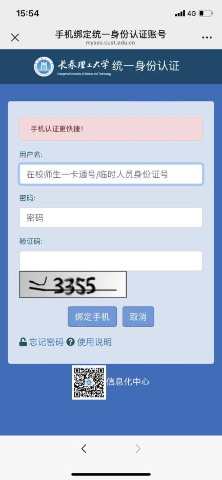 3.初次登录学校统一身份认证系统时,需先完成账号绑定,若已绑定系统自动跳过此步。