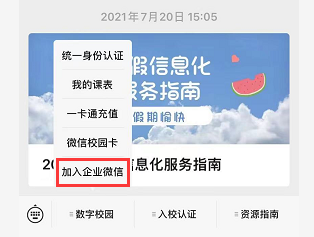 1.微信扫描二维码,关注“长春理工大学信息化中心”公众号,选择左下角数字校园->加入企业微信。