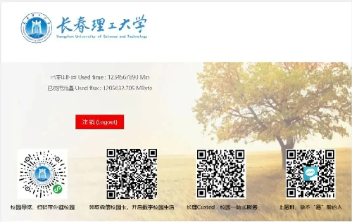 2.输入校园网账号(一卡通号)和校园网密码,点击登录。如果出现如下页面则登录成功,即可正常使用网络。