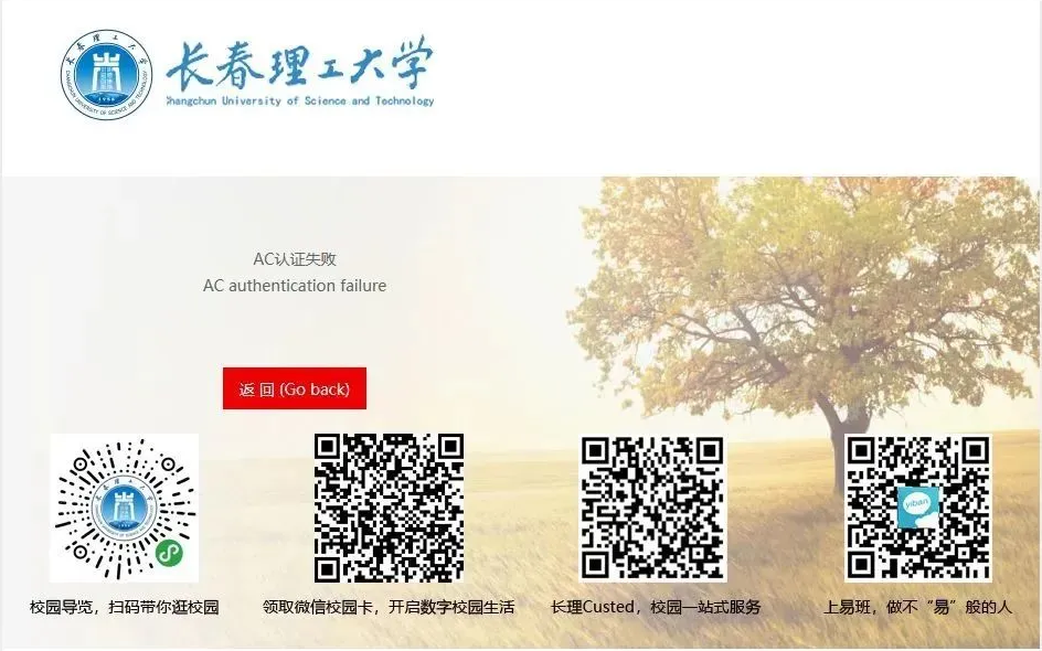 3.如果出现如下页面提示AC认证失败,请检查密码是否输入正确或账号是否欠费。